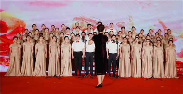 “没有共产党就没有新中国……”在激昂的合唱中,全体演职人员高歌礼赞建党百年,本次文艺汇演圆满落下帷幕。(党委宣传部)