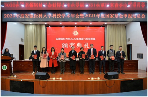 1月28日下午,安徽医科大学召开2020年度科技学术年会暨2021年度国家基金申报动员会,对学校2020年度在科技工作中表现突出的集体和个人进行了表彰。我院药学部主任王建青荣获“安徽医科大学復元科技新星”称号。