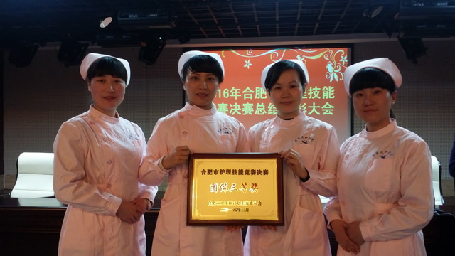 3月26日下午,由合肥市卫计委主办的全市护理技能大赛正式落下帷幕,来自合肥市的19支代表队共76名选手参加。经过一天半激烈而又紧张的角逐,我院护士修杨、张丽、张艳、郭丽组成的安医大四附院代表队,在众多三甲医院组织的强队中脱颖而出,成功斩获团体第四名(三等奖)。