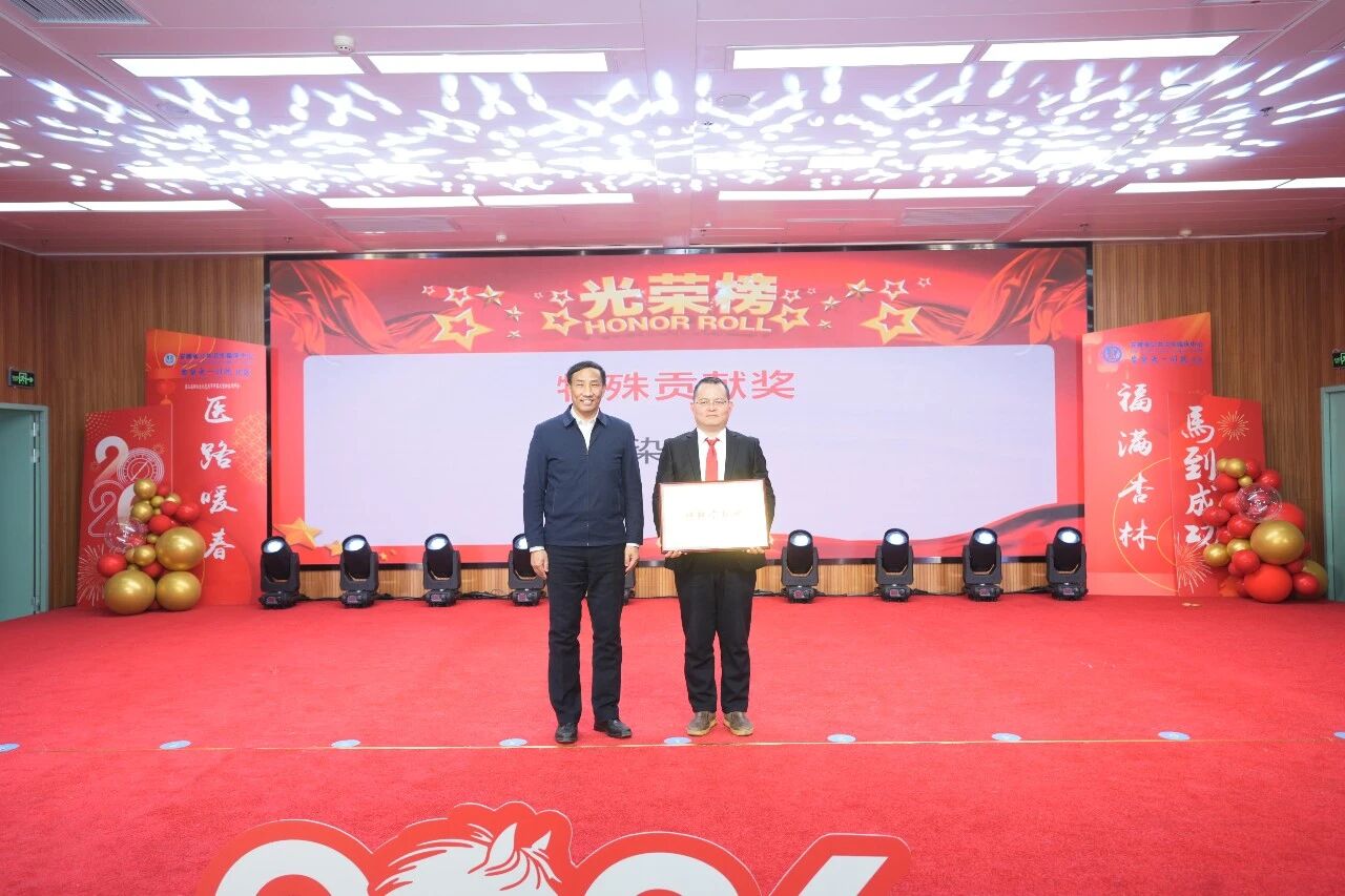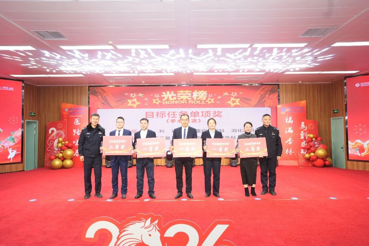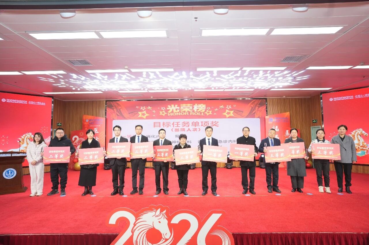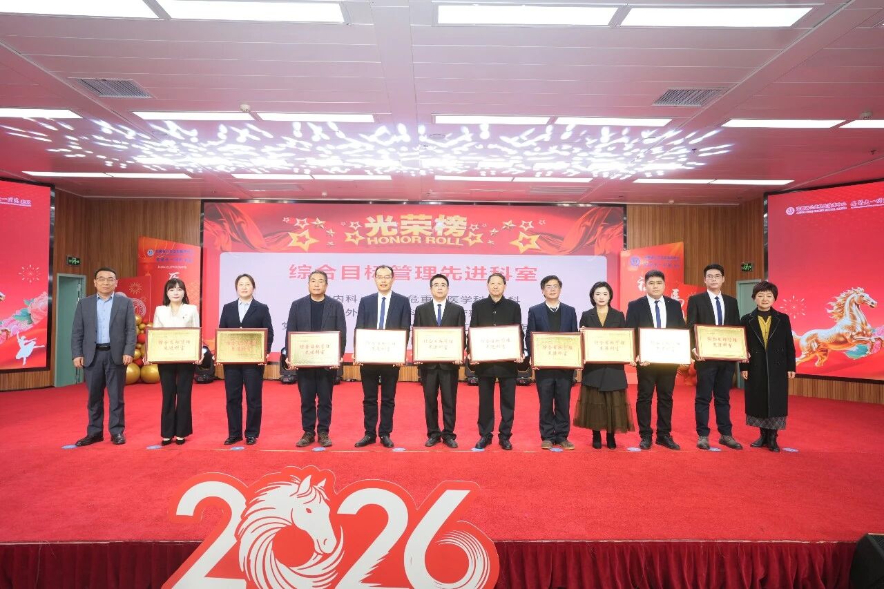 戴晓支向获得表彰的集体和个人表示热烈祝贺。他表示,2026年作为“十五五”规划开局之年,是承前启后、继往开来的关键一年,要切实把思想和行动统一到各项部署要求上来,结合工作实际,进一步优化完善2026年工作思路,细化发展目标,确保各项任务落到实处、取得实效。他就2026年医院工作提出六点意见:一是持续强化学习提升,不断补齐能力素质、知识结构与管理水平短板;二是坚持高效推进、狠抓落实,确保各项工作提速提质、落地见效;三是大力弘扬担当进取精神,主动谋事、积极干事;四是始终保持昂扬奋进、攻坚克难的拼劲,以过硬作风推动各项工作高标准推进、高质量完成;五是牢固树立大局意识,凝心聚力、协同配合,营造上下同心、团结奋进的浓厚氛围;六是坚持守正创新、勇于突破,以新理念、新思路、新举措破解发展难题,以实干实绩奋力推动医院事业再上新台阶,为推动医院高质量发展、保障人民群众生命健康、助力实现“十五五”卫生健康工作良好开局作出更大贡献。