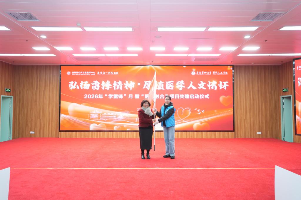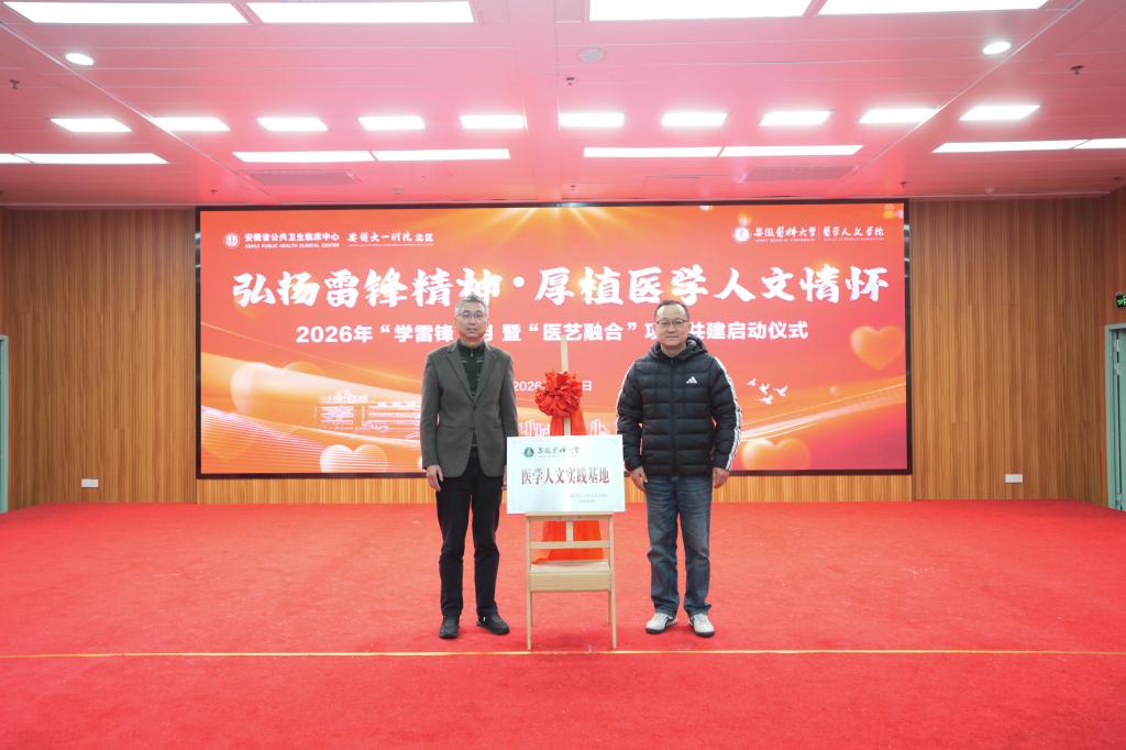 3月5日上午,医院举行“弘扬雷锋精神・厚植医学人文情怀”——2026年“学雷锋”月暨“医艺融合”项目共建启动仪式。院党委书记戴晓支,安徽医科大学医学人文学院党委书记顾秀平、院长黄晓晖、副院长杨优出席仪式。仪式由院党委副书记、副院长陈然主持。