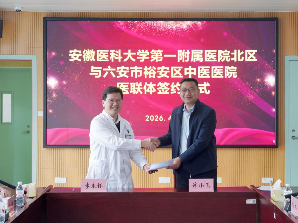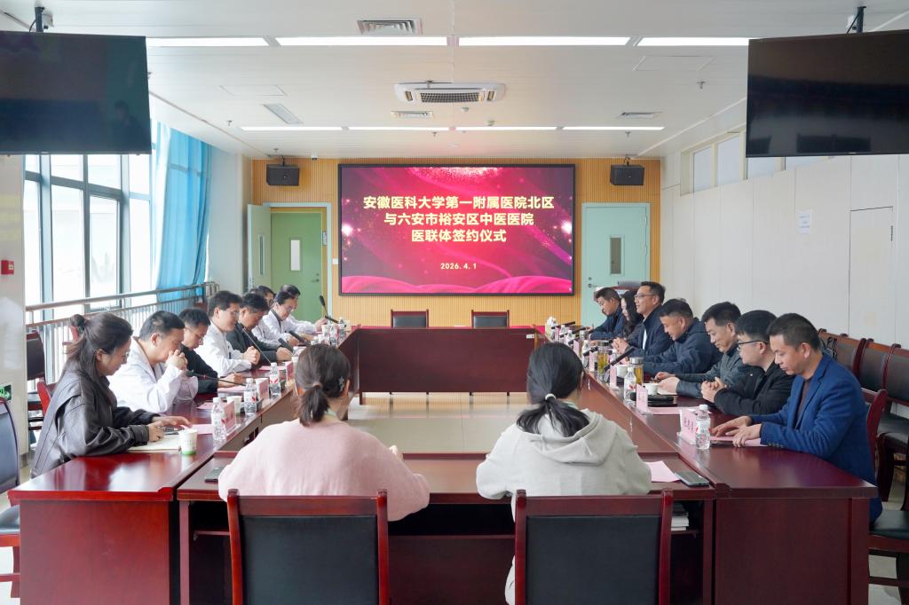 4月1日上午,六安市裕安区中医医院党委书记周超一行来院交流,并与我院签订共建医联体合作协议。我院党委副书记、执行院长李永怀,六安市裕安区中医医院党委委员、副院长许小飞及院长助理赵刚参加会议。我院院长助理陆震主持会议。