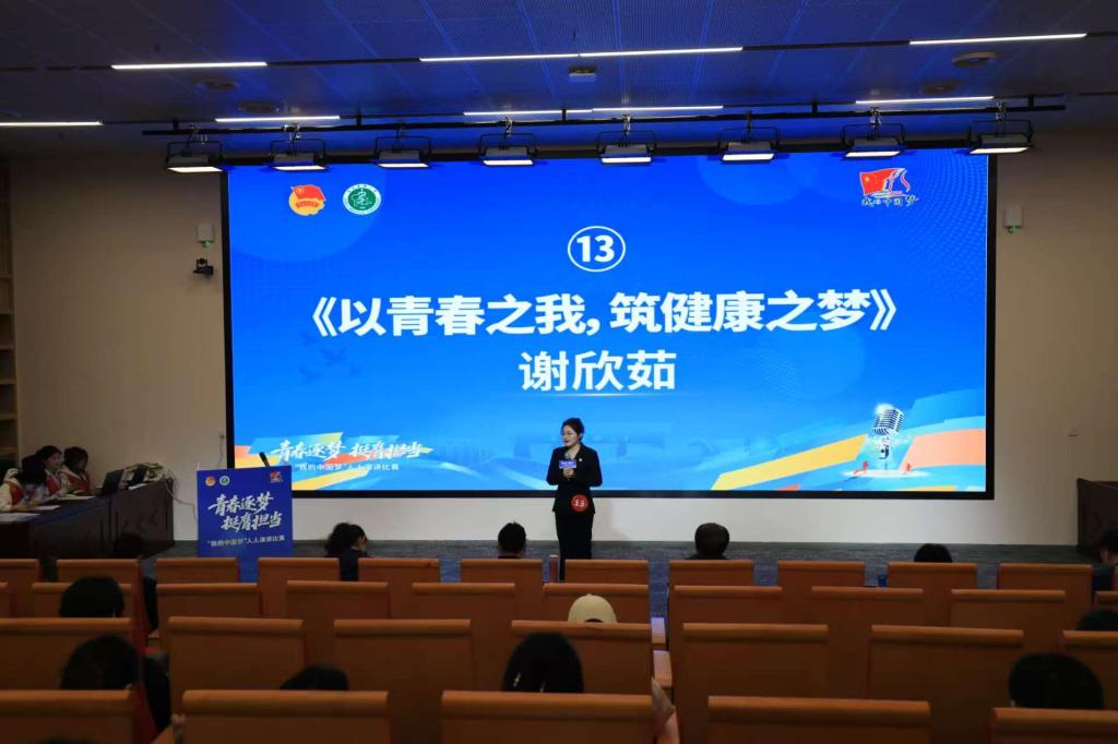 决赛现场,来自各学院的19名研究生选手同台竞技。谢欣茹以《以青春之我,筑健康之梦》为题,结合甲乳外科临床实践中的真实故事,生动阐述了青年医学生将个人理想融入健康中国战略的信念与担当。