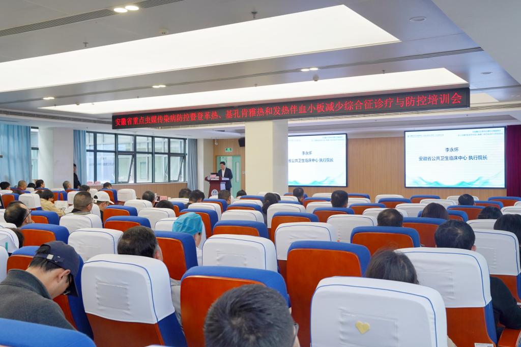 4月10日下午,由安徽省卫生健康委员会、安徽省疾病预防控制局主办,我院承办的“全省重点虫媒传染病防控暨登革热、基孔肯雅热和发热伴血小板减少综合征诊疗与防控培训会”在我院召开。安徽省疾病预防控制局传防处处长唐昳出席会议并作重要工作部署。我院党委书记戴晓支,执行院长、执行主任李永怀出席会议。副院长、副主任郜玉峰主持会议。