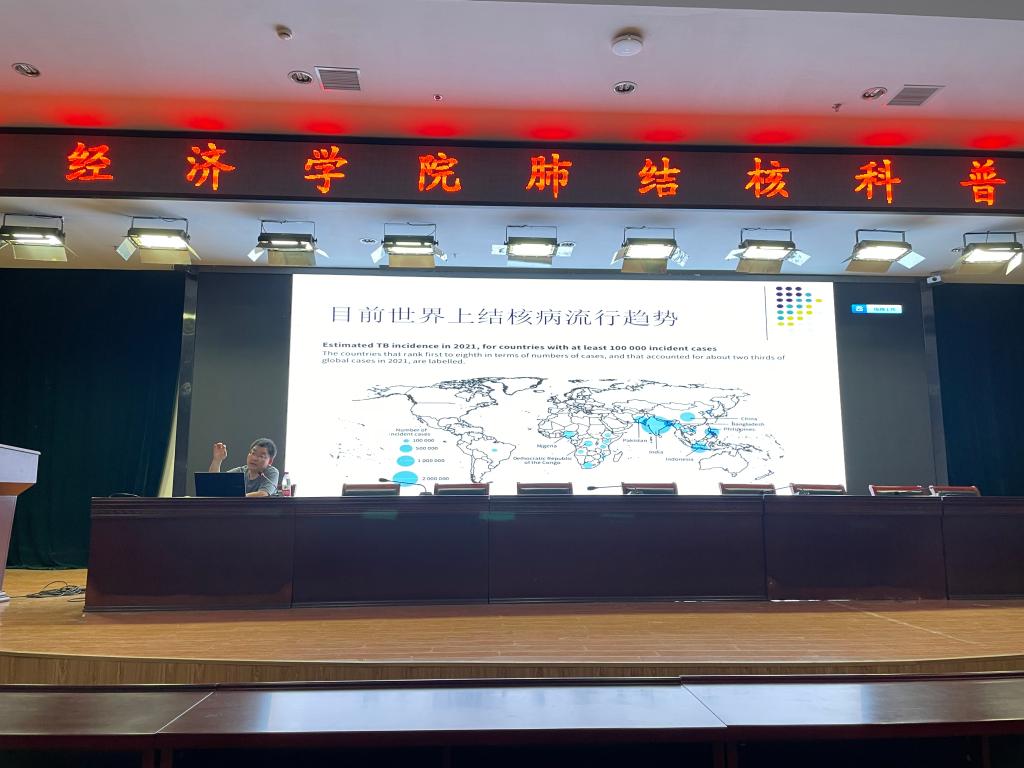 讲座上,刘丽光从肺结核发病率、漏诊率高,但诊治花费少,效果好的特点出发,结合实际临床案例,让学生们对肺结核的传播特点、临床表现及诊治手段有了更加清晰的认识。此外,刘丽光与同学们通过知识问答的形式,加深同学们对结核病传播途径、预防等核心知识的掌握。他倡导与会人员应积极向身边同学、家人进一步宣传结核病防治知识,营造全社会共同参与结核病防治的浓厚氛围。