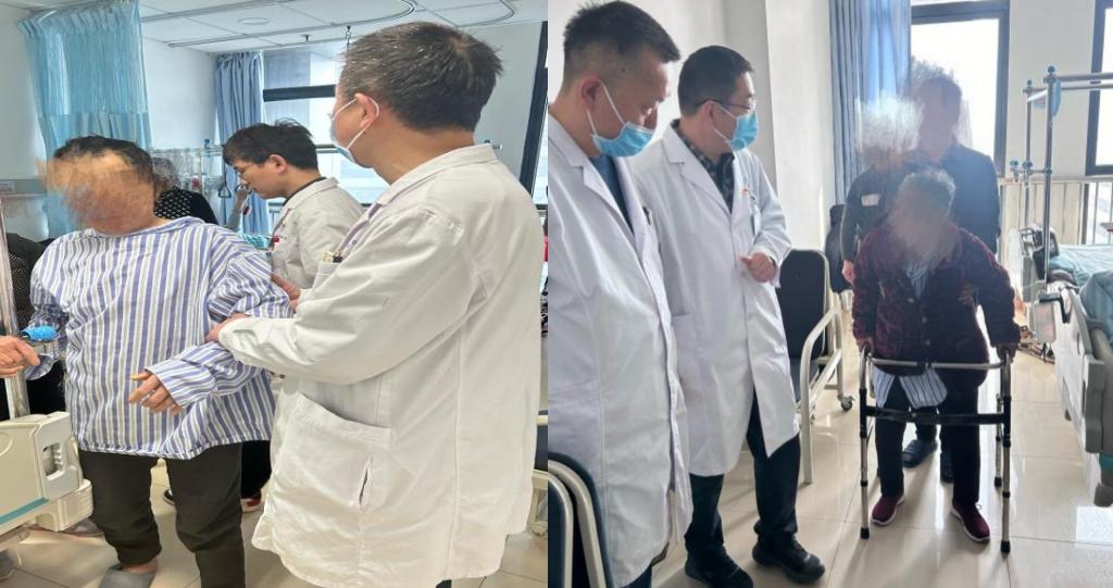 84岁的高龄老人杜奶奶,因右侧髋部骨折,高血压、糖尿病,于2024年2月22日入住我院老年骨科,经过治疗顺利下床活动后康复出院,她的身体健康状态及康复情况仍牵动着骨科医护人员的心。3月19日在秦昆鹏副主任医师、潘婷护士长的带领下,科室医护团队一行五人带着关爱走进患者的家中,对患者进行饮食指导、功能锻炼等专业的医疗、护理服务。