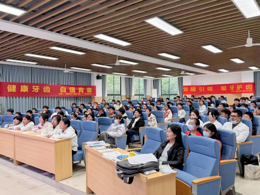 4月13日下午,我院口腔科党支部走进合肥一六八陶冲湖中学,开展结对共建活动,为200余名学生送上专业口腔健康服务。