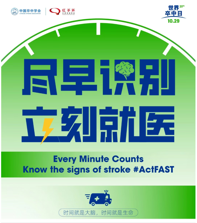 2025年10月29日是第20个世界卒中日。今年的宣传主题是“尽早识别,立刻就医!”